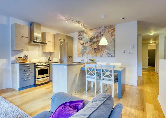 Le domicile de 100 m² est situé dans le quartier "Centre de Montréal" à Montréal, non loin de la station de métro McGill. La résidence se trouve à environ 2 km du Vieux-Port de Montréal et à 400 mètres du Stade Percival-Molson.